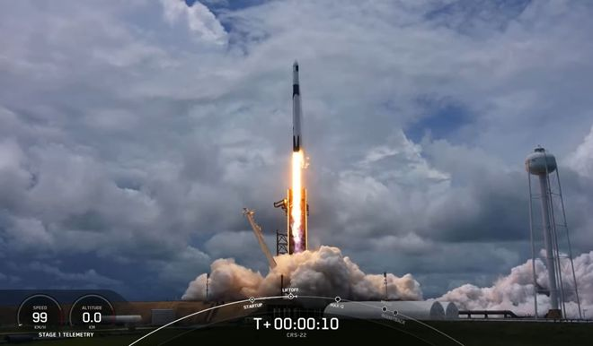 6月4日,當(dāng)?shù)貢r間周四,美國太空探索技術(shù)公司SpaceX在肯尼迪航天中心39A發(fā)射臺成功發(fā)射今年第17次,為美國宇航局執(zhí)行第22次國際空間站補(bǔ)給任務(wù)。在這項任務(wù)中,無人駕駛貨運(yùn)龍飛船將重達(dá)3311公斤的材料、科學(xué)實(shí)驗(yàn)儀器和硬件送入太空,包括為空間站提供電力支持的兩個新型太陽能電池板。