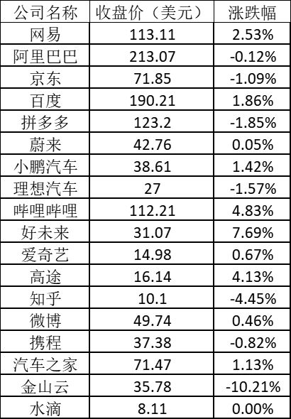 其他熱門股票漲跌不一,其中嗶哩嗶哩上漲4.83%,百度上漲1.86%,愛奇藝上漲0.67%,貝殼下跌1.15%,霧芯科技下跌1.29%,知乎下跌4.45%,金山云下跌10.21%。