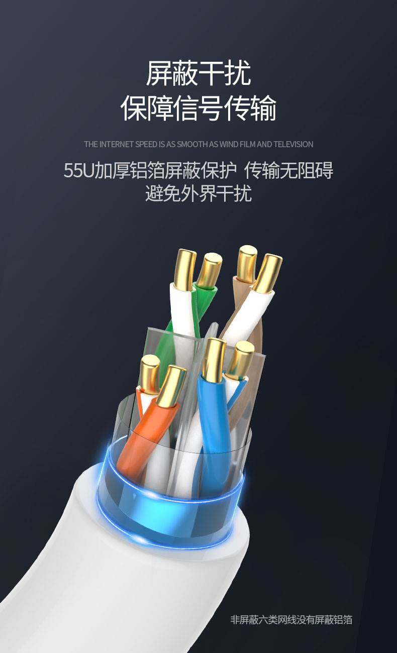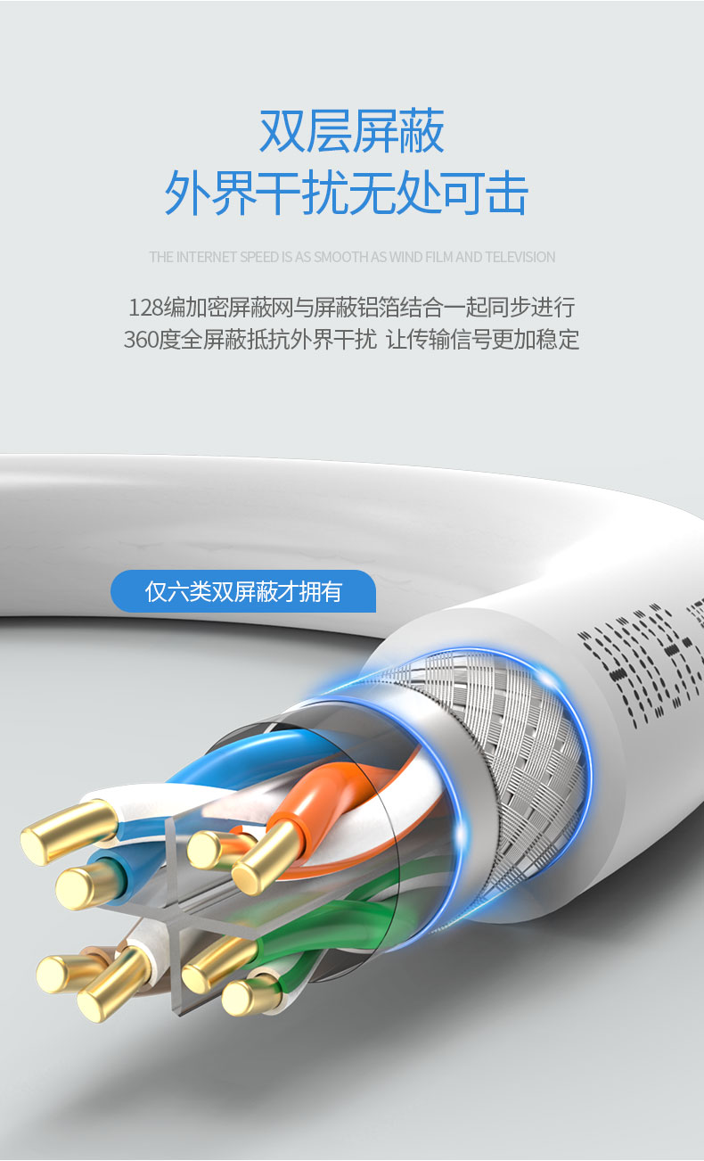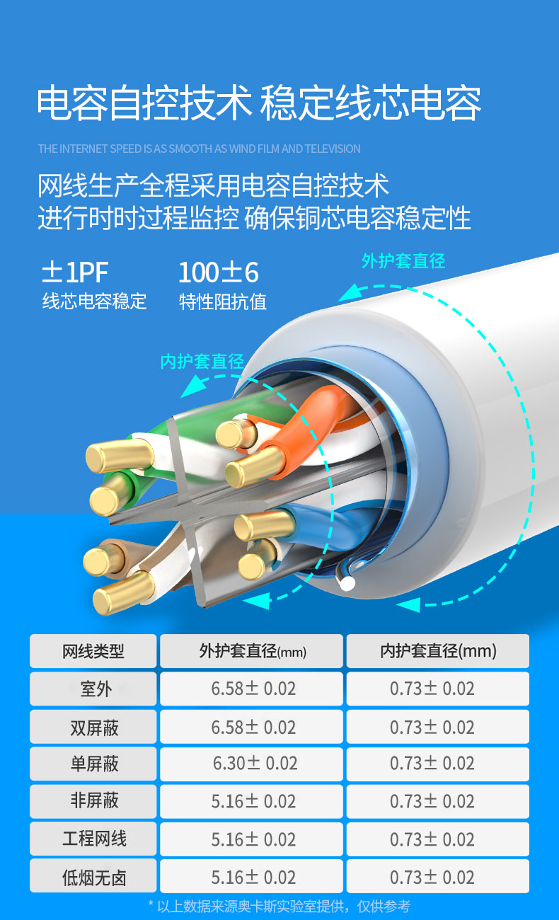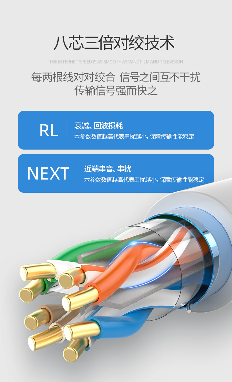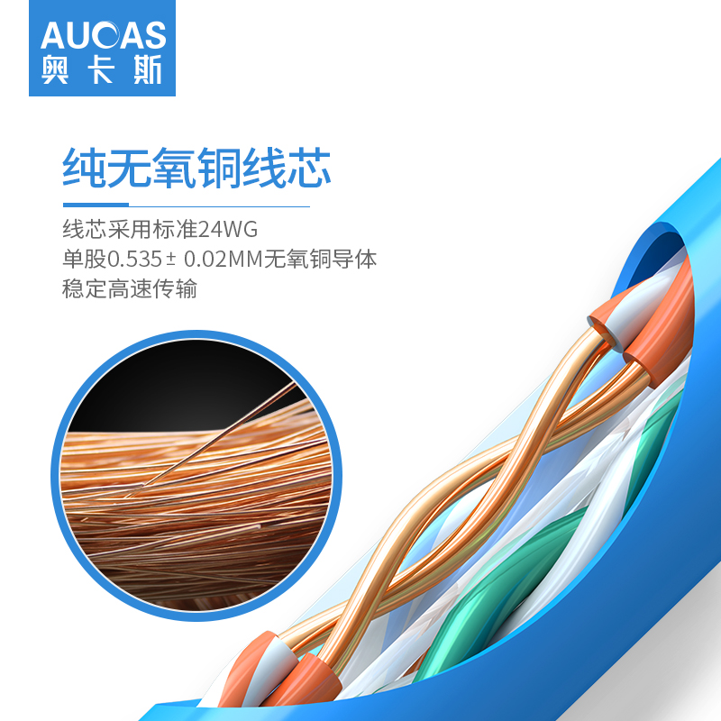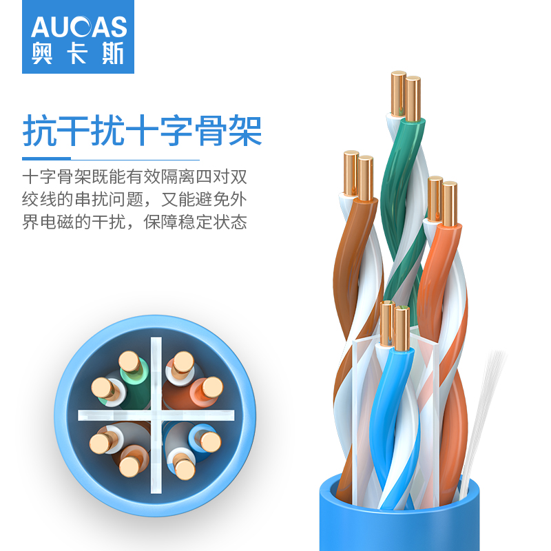 奧卡斯六類非屏蔽網(wǎng)線結(jié)構(gòu)四對(duì)對(duì)絞方向和成纜總絞方向相反,又名雙向螺旋。更好的保護(hù)了熱脹冷縮帶來(lái)的衰減,可上期達(dá)萬(wàn)兆速率,250MHz帶寬體驗(yàn)。