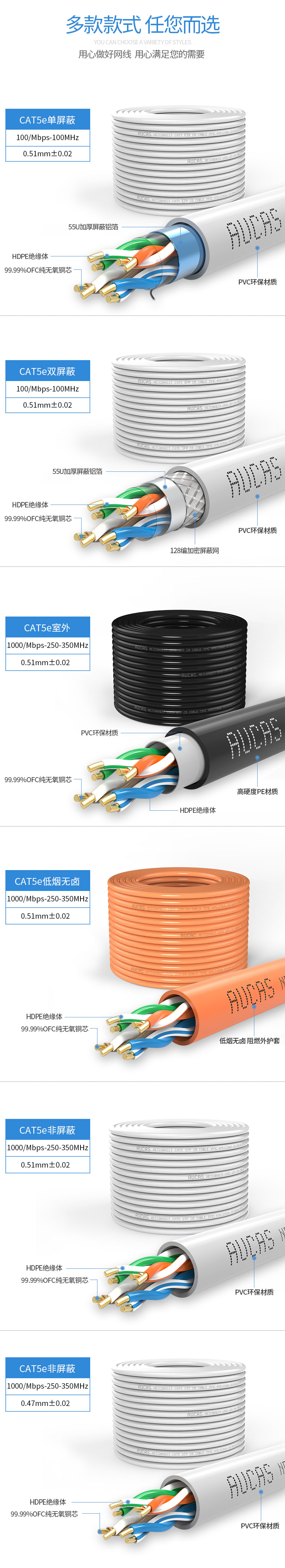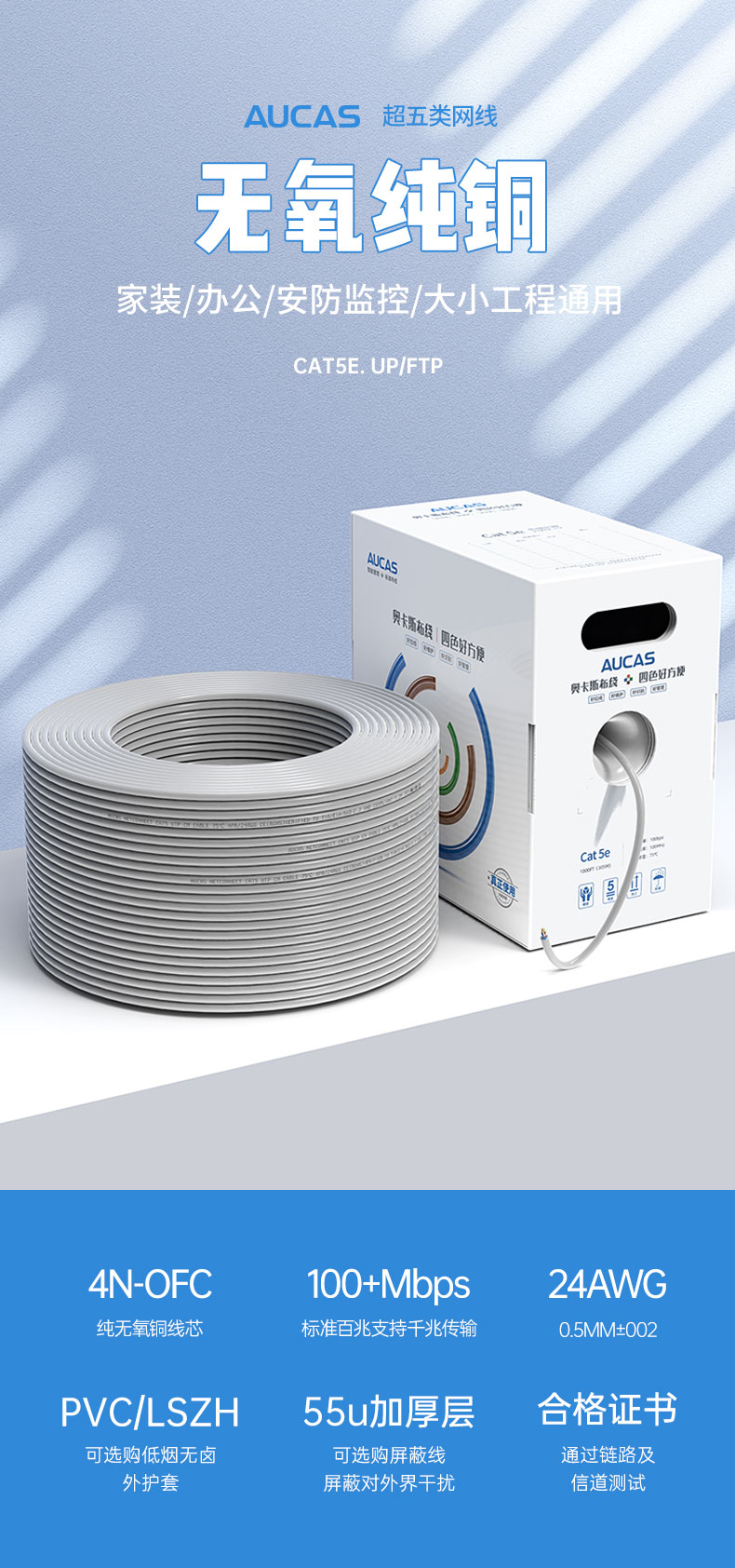 專門用于結(jié)構(gòu)化綜合布線的奧卡斯Cat.5e局域網(wǎng)電纜,傳輸語(yǔ)言、數(shù)據(jù)信號(hào),支持當(dāng)前的高帶寬應(yīng)用,特別是適用于當(dāng)前的智能化解決方案, 尤其是數(shù)據(jù)中心中,作為語(yǔ)音、數(shù)據(jù)、圖像、多媒體等的傳輸載體。