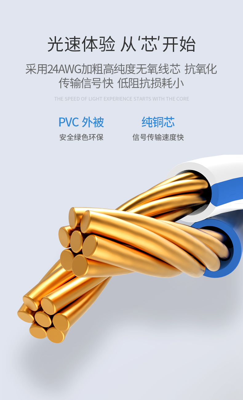 百兆屏蔽跳線,速率可達(dá)百兆,頻率達(dá)100MHz。主要作為監(jiān)控、語(yǔ)音、數(shù)據(jù)、多媒體等的傳輸載體,適用于家庭游戲、影音等娛樂(lè)設(shè)備。