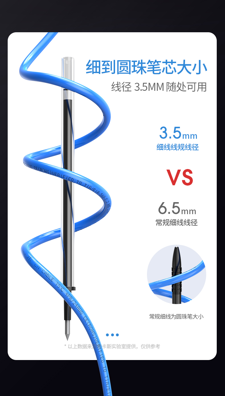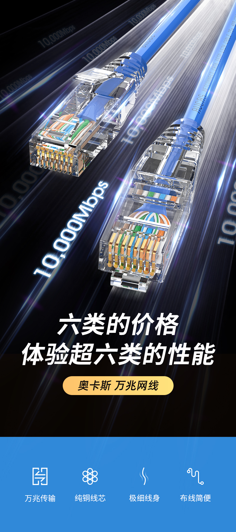 六類極細跳線,速率可達千兆,頻率達250MHz。主要作為監(jiān)控、語音、數(shù)據(jù)、多媒體等的傳輸載體,適用于家庭游戲、影音等娛樂設備。