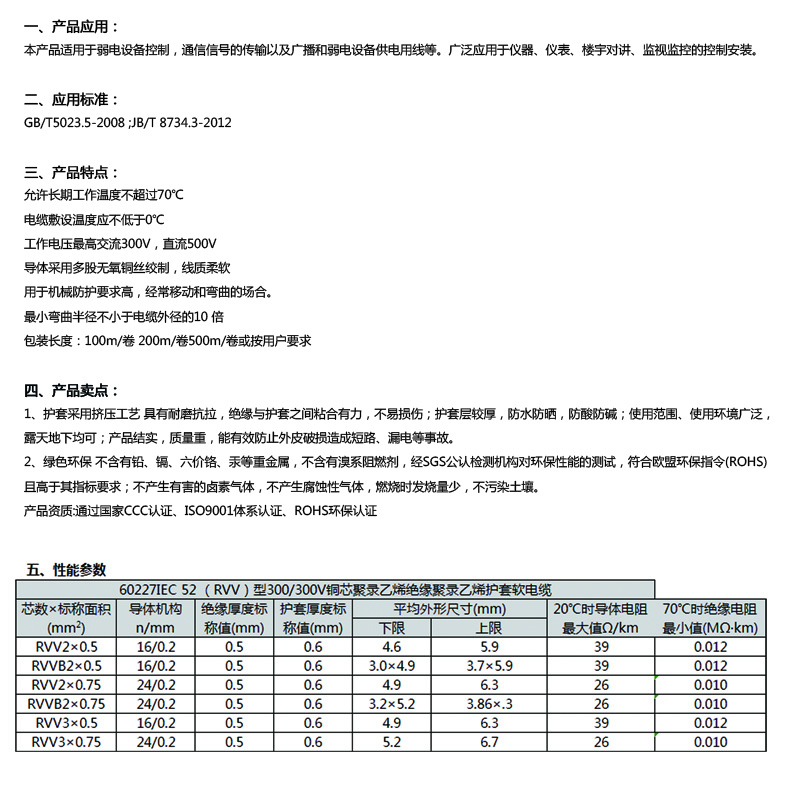 本產(chǎn)品適用于弱電設(shè)備控制,通信信號(hào)的傳輸以及廣播和弱電設(shè)備供電用線等