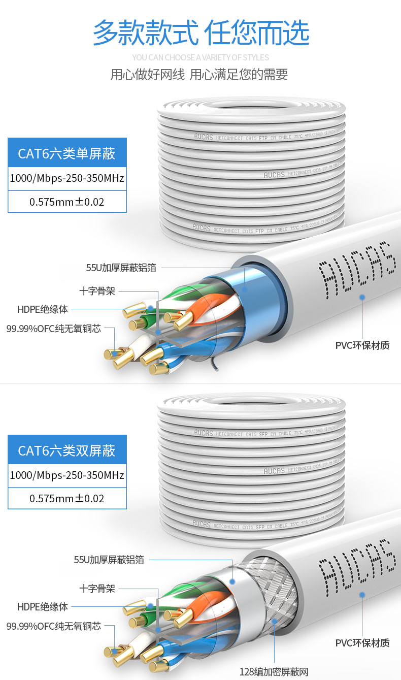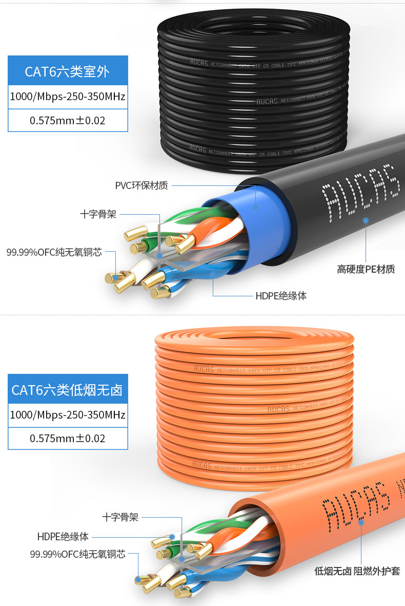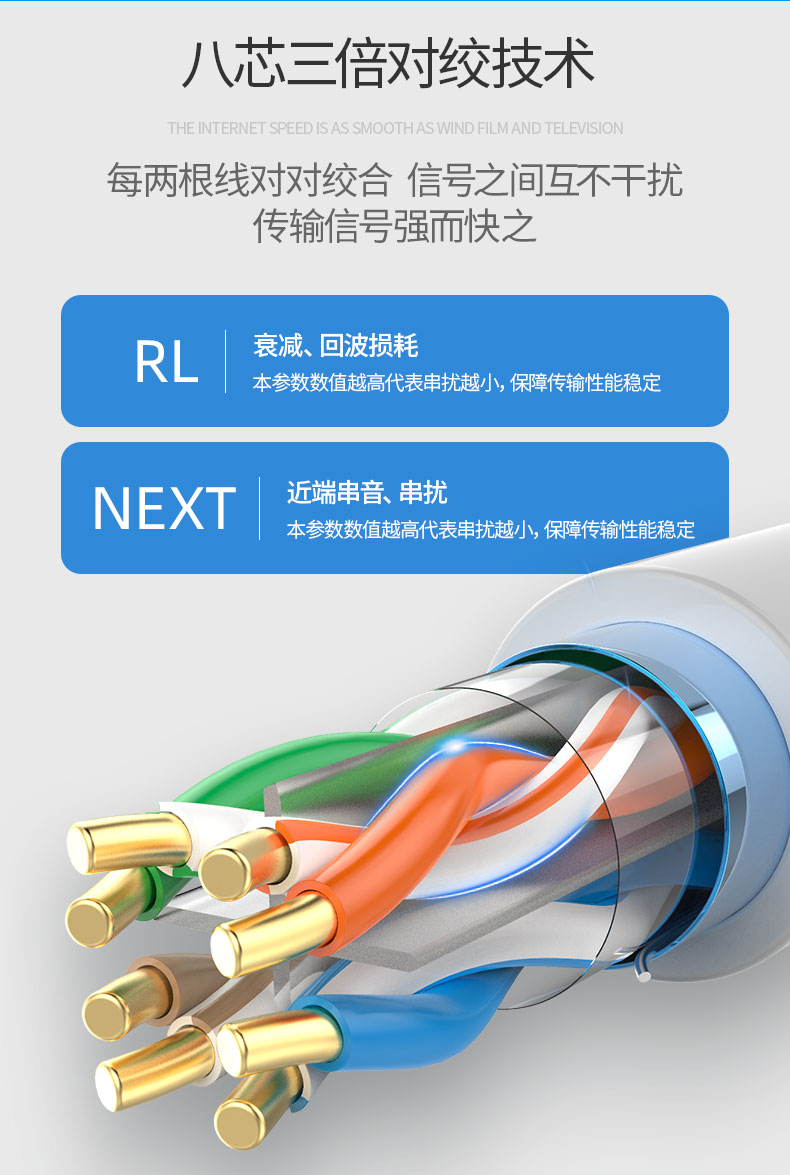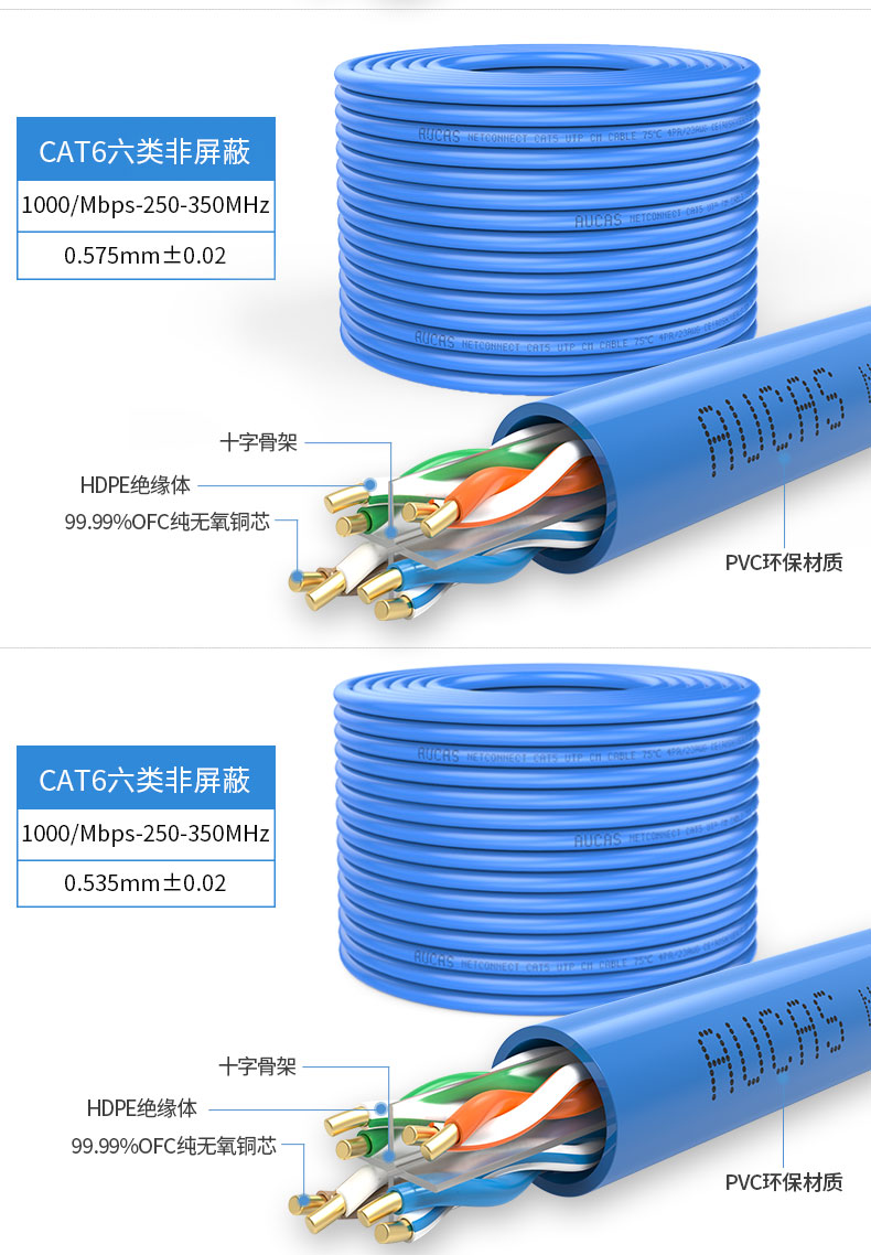 雙向螺旋結(jié)構(gòu)線纜,傳輸性能穩(wěn)定,速率:1000Mbps,帶寬:350MHz