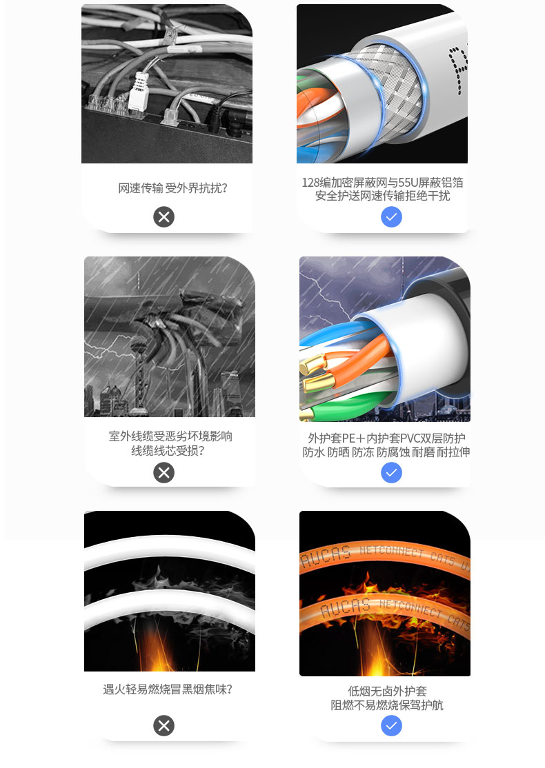 線纜結(jié)構(gòu):四對八芯雙絞屏蔽 十字隔離