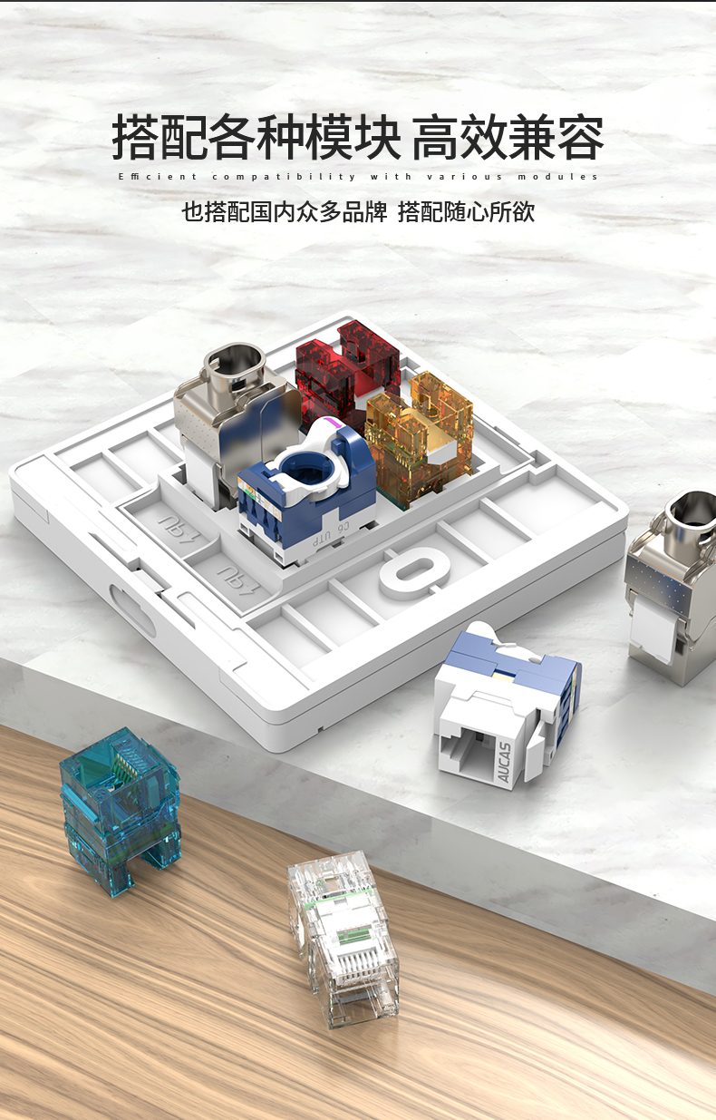 適用于各類網(wǎng)絡(luò)工程,辦公,居家使用,斜口引導(dǎo)插入,更顯美觀,可安網(wǎng)絡(luò)信息模塊RJ45接口、語(yǔ)音RJ11電話模塊和CATV有限電視模塊安裝,拆卸方便。