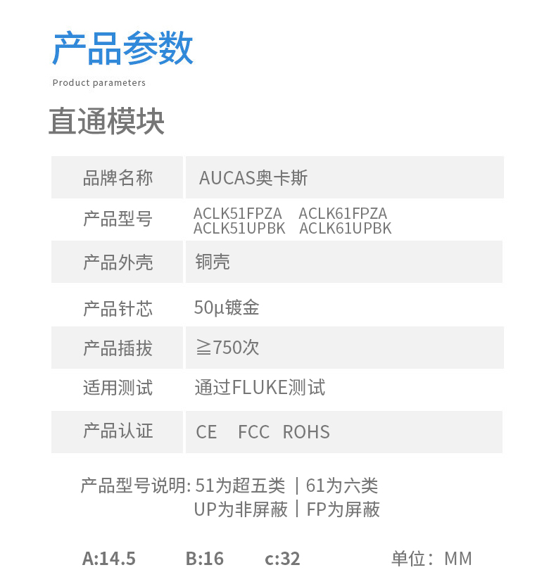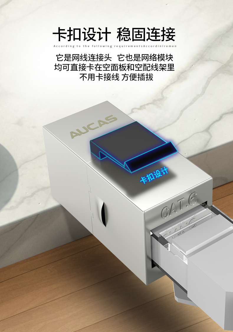 AUCAS(奧卡斯) Cat.6局域網(wǎng),傳輸語(yǔ)言、數(shù)據(jù)信號(hào),支持當(dāng)前的高帶寬應(yīng)用,可以安裝到墻面信息面板上,固定在桌面信息盒中,并可插拔RJ11/RJ45。