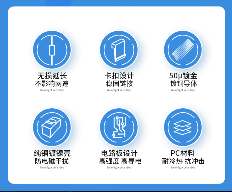 整體采用Press Fit技術(shù),無(wú)焊點(diǎn)電路板,可提高性能及降低污染。 通過(guò)TLC認(rèn)證,保證NEXT值超越ANSI/TIA 568 .2-D Cat.5e的要求,及六點(diǎn)連接Channel測(cè)試認(rèn)證。
