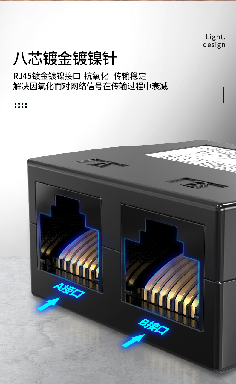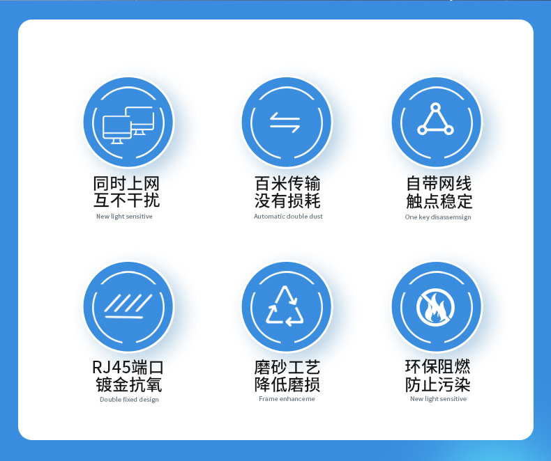 整體采用Press Fit技術(shù),無焊點電路板,可提高性能及降低污染。 通過TLC認(rèn)證,保證NEXT值超越ANSI/TIA 568 .2-D Cat.5e的要求,及六點連接Channel測試認(rèn)證。
