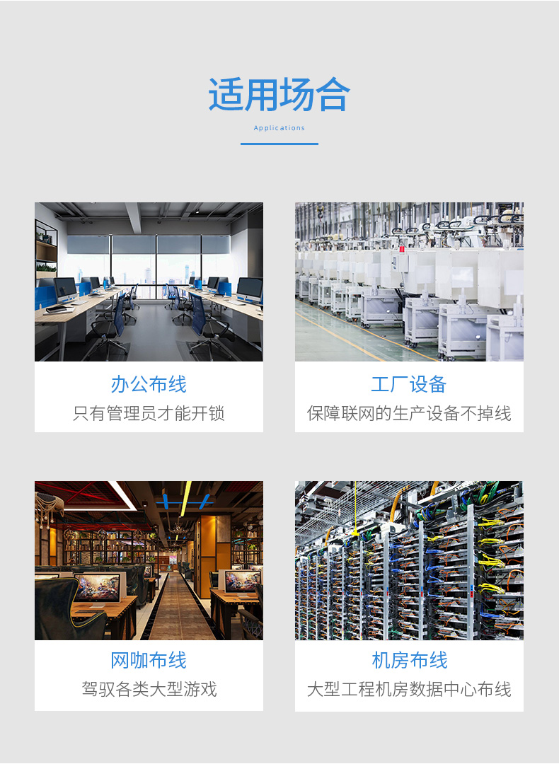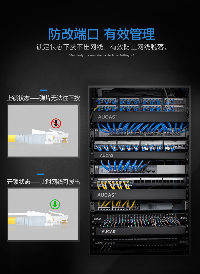 奧卡斯帶鎖超五類跳線,速率可達(dá)百兆,頻率達(dá)100MHz。主要用于中心機(jī)房配線架內(nèi)模塊插座與設(shè)備的連接,完全滿足E級(jí)鏈路的應(yīng)用需求。
