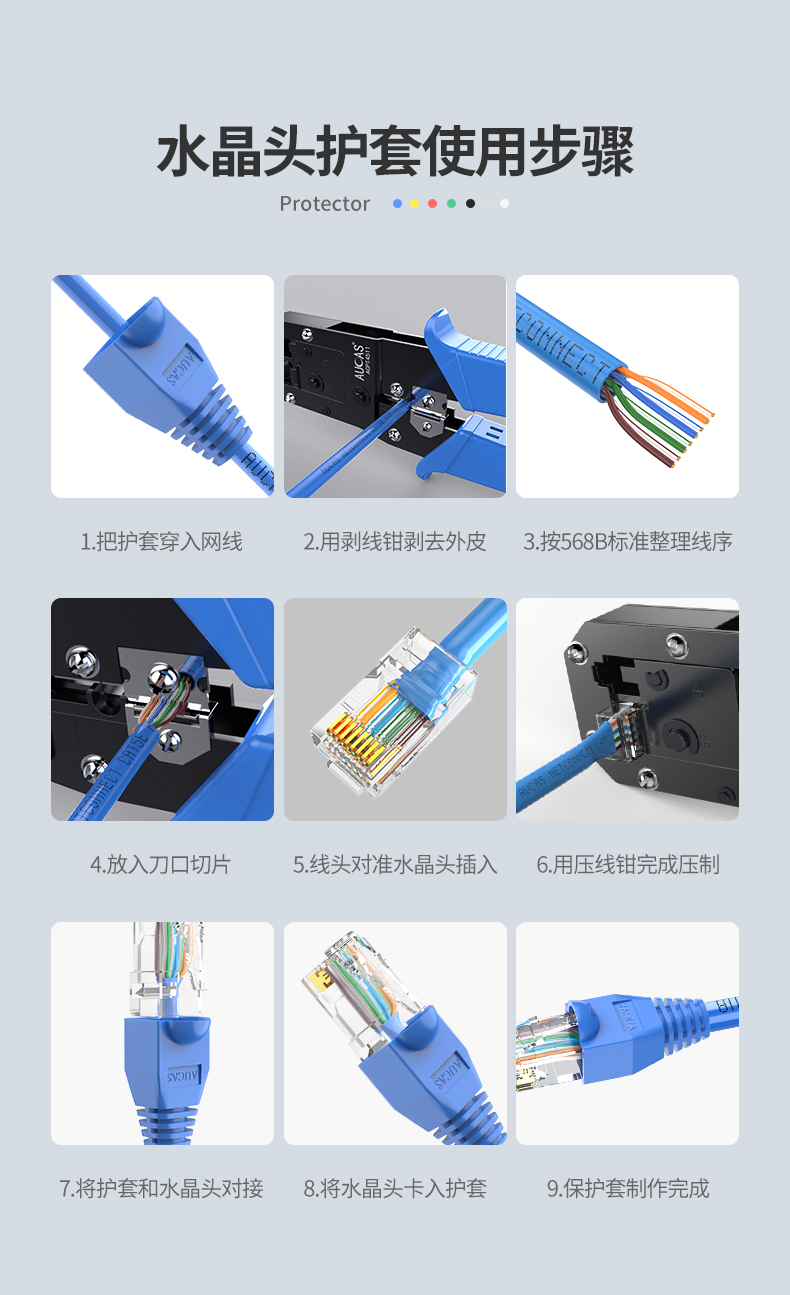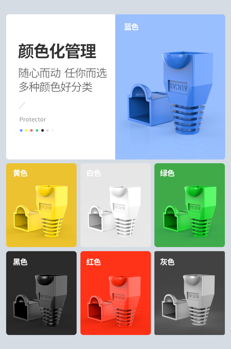 奧卡斯七類水晶頭護套;多顏色化管理,好識別,好維護