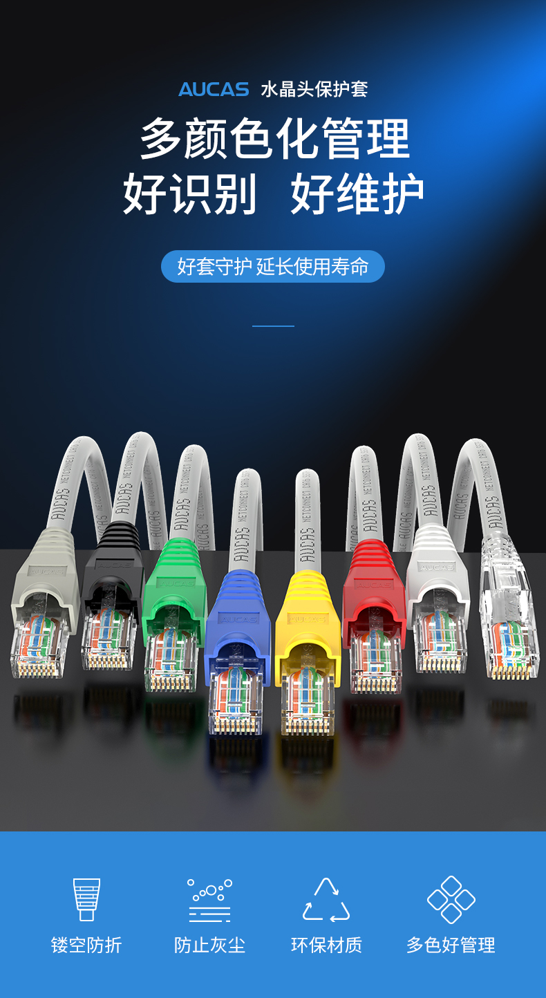 奧卡斯超五類、六類水晶頭護(hù)套;多顏色化管理,好識(shí)別,好維護(hù)