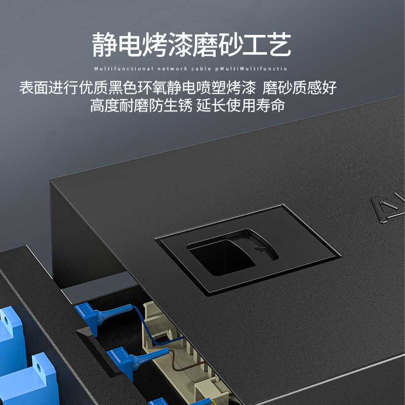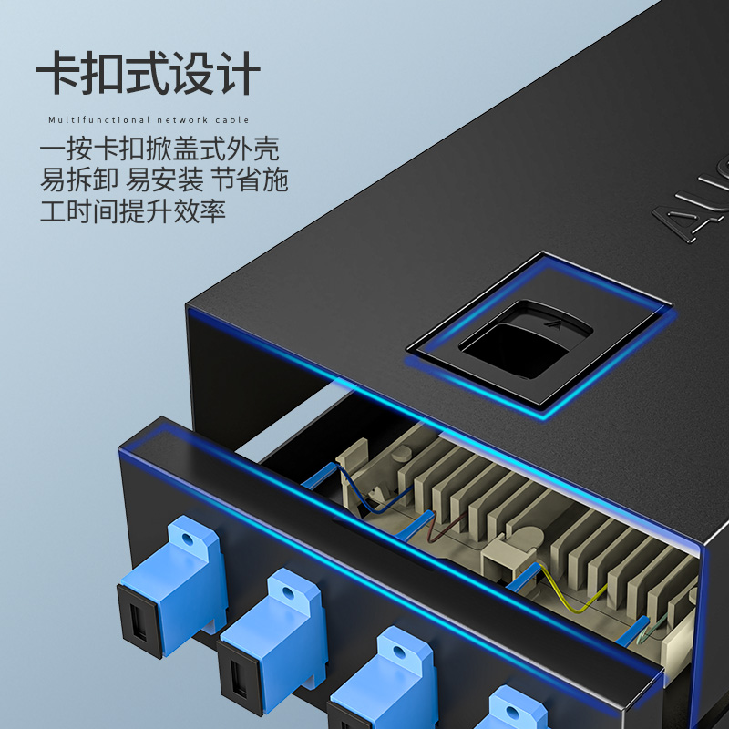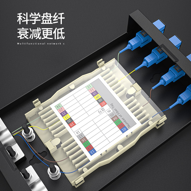 以高質(zhì)量的冷軋鋼板制作,表層靜電噴涂烤漆處理,外觀精美。通用型面板設(shè)計,可安裝ST/ SC/ LC /FC等不同類型耦合器、易拆卸前蓋及上蓋扣設(shè)計,免工具即可拆卸前蓋及上蓋板,裝卸更為容易