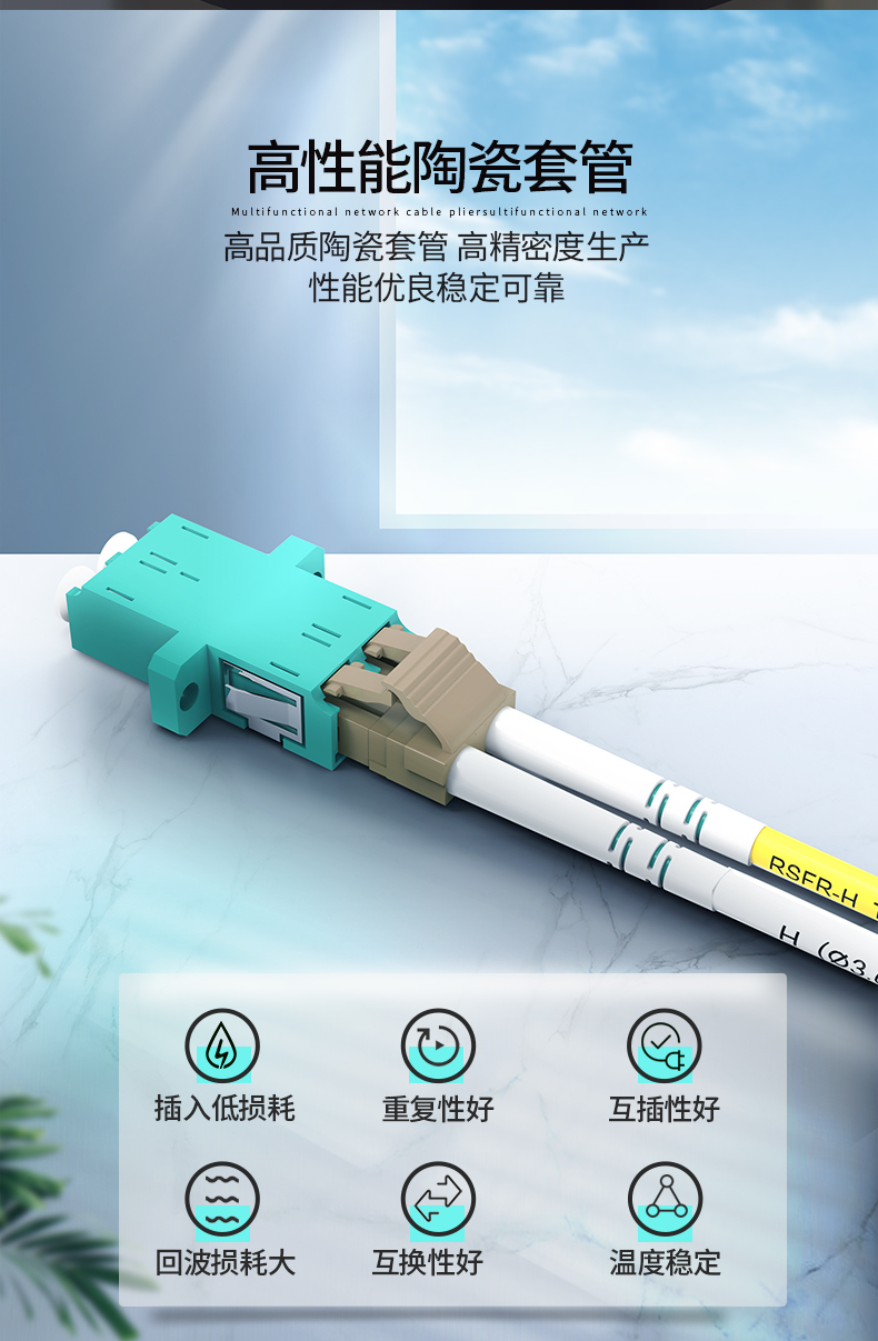 性能指標(biāo)超過(guò)ITU-T G.652.D的要求;產(chǎn)品采用陶瓷插芯,制作精度高; 質(zhì)量好,衰減低