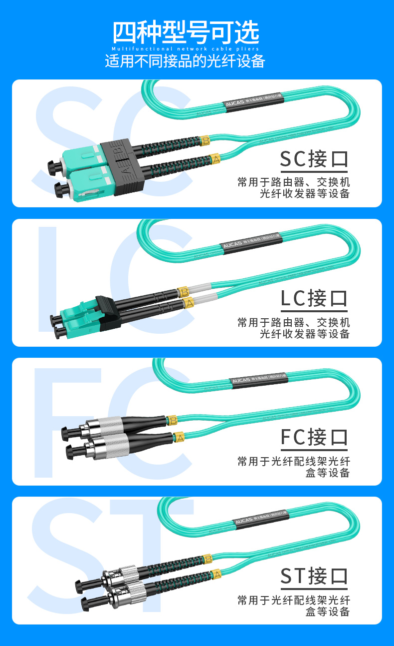 奧卡斯光纖跳線適用于LAN/WAN、數(shù)據(jù)傳輸網(wǎng)絡(luò)、圖像傳輸網(wǎng)絡(luò)、CATV、光學(xué)測(cè)試儀、光電自控系統(tǒng)