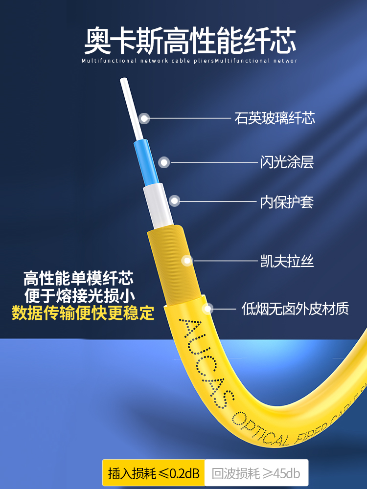 奧卡斯光纖跳線采用最先進的研磨技術和研磨設備,保證光纖的圓心研磨偏移,凹陷、表面無劃痕或瑕疵、陶瓷端面曲率半徑的大小等技術參數(shù)符合國際標準的規(guī)定; 插入損耗小、回波損耗大,互換性能,重復插撥性能優(yōu)良,使用方便; 提供數(shù)字表示或是彩色護套以區(qū)分接收端或發(fā)射端;