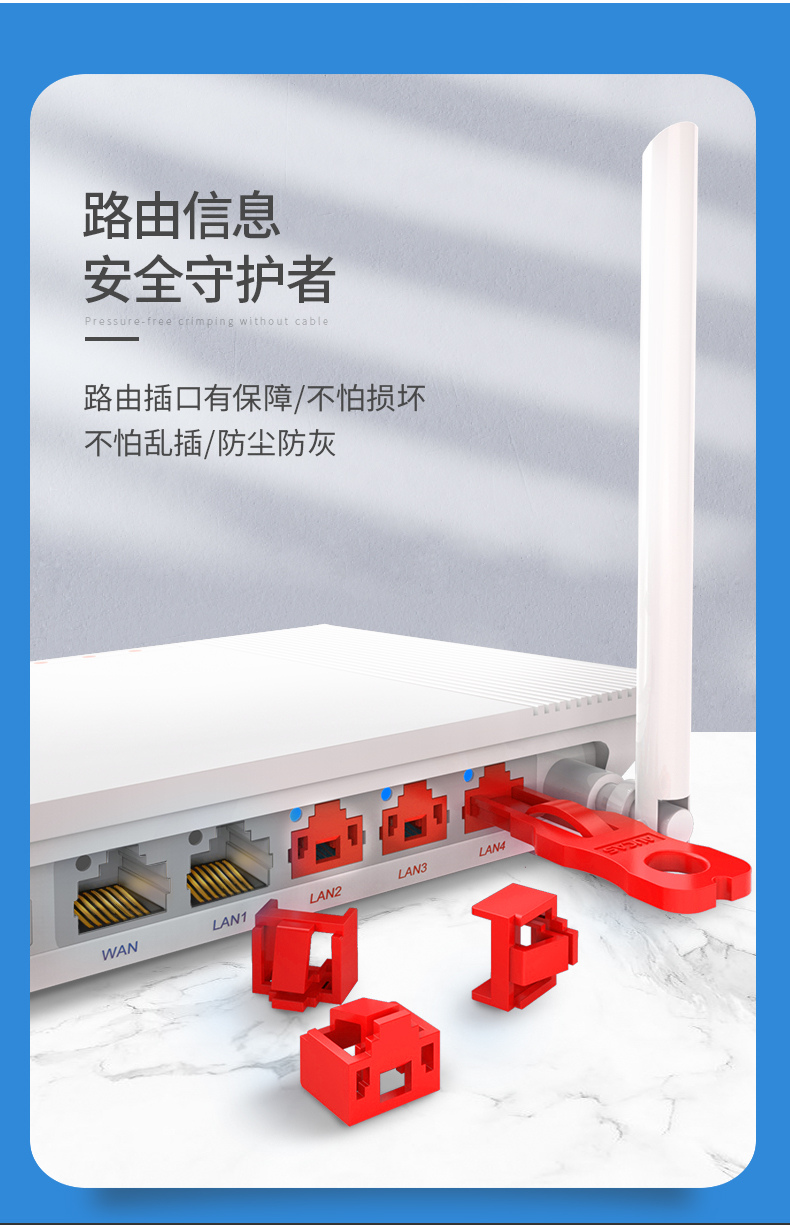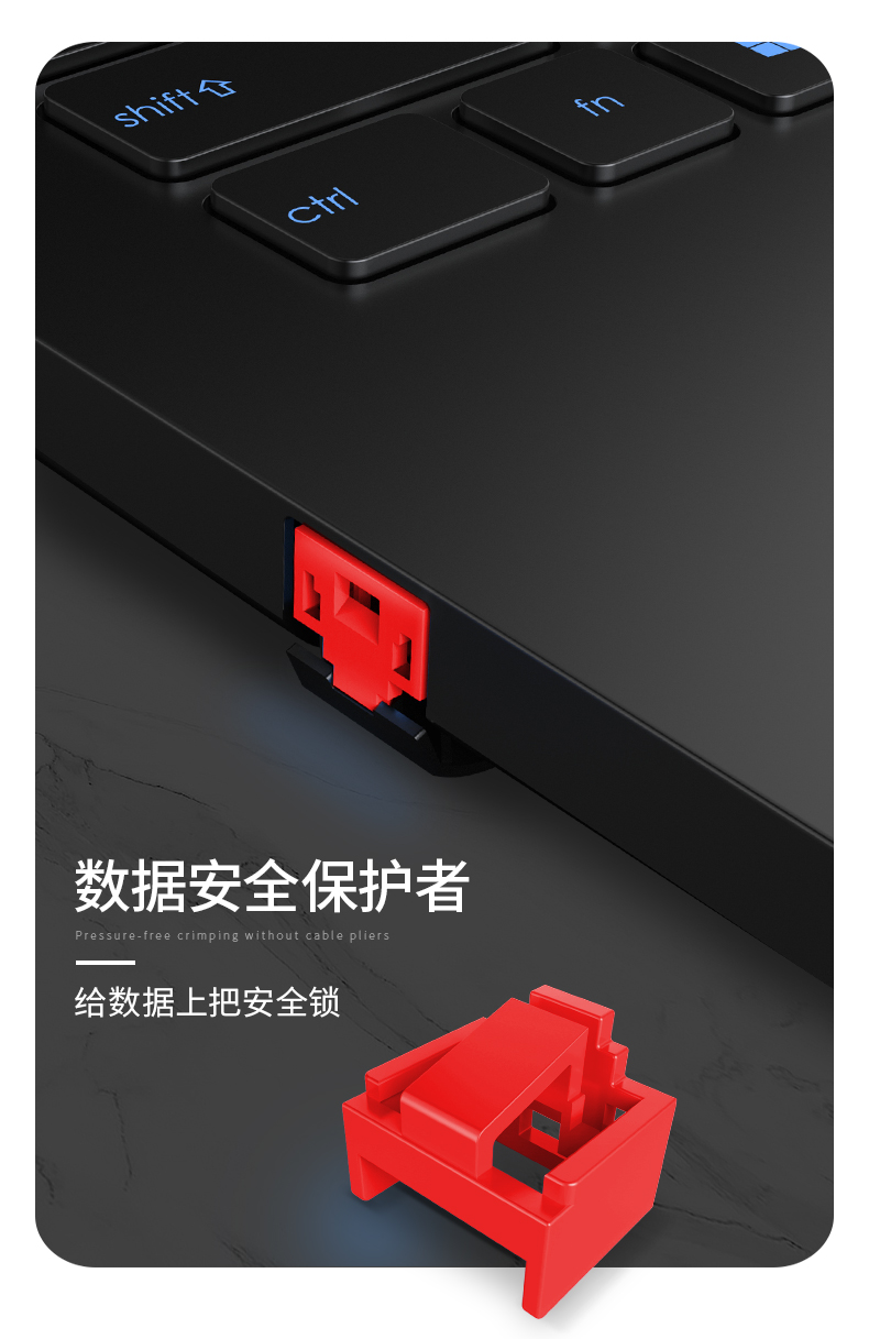 采用高阻燃 PC+ABS 工程材料 可提供紅、黃、藍、綠、四種顏色選擇,方便從顏色識別網(wǎng)絡信息系統(tǒng) 常規(guī) RJ45 網(wǎng)絡插座端口專用,用于鎖住不使用的 RJ45 網(wǎng)絡接口 搭配專用解鎖工具,用于取下通用 RJ45 端口鎖