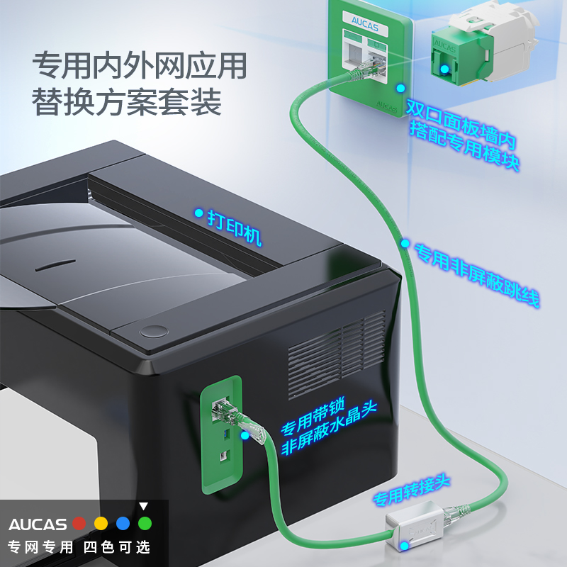 通過結(jié)構(gòu)化設(shè)計(jì)調(diào)整將 RJ45 網(wǎng)絡(luò)模塊防塵蓋接口轉(zhuǎn)換成專用網(wǎng)絡(luò)接口,防止常規(guī)網(wǎng)絡(luò)跳線誤插RJ45 水晶頭搭配專用解鎖工具防止誤插拔功能,需專用解鎖工具方可取下專用網(wǎng)絡(luò)轉(zhuǎn)接頭轉(zhuǎn)接頭及連接器間線纜可提供紅、黃、藍(lán)、綠四種顏色選擇方便從顏色識別網(wǎng)絡(luò)信息系統(tǒng)