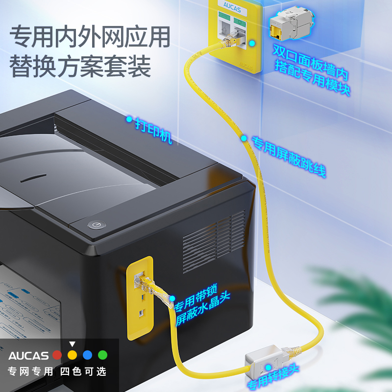 通過結構化設計調整將 RJ45 網(wǎng)絡模塊防塵蓋接口轉換成專用網(wǎng)絡接口,防止常規(guī)網(wǎng)絡跳線誤插RJ45 水晶頭搭配專用解鎖工具防止誤插拔功能,需專用解鎖工具方可取下專用網(wǎng)絡轉接頭轉接頭及連接器間線纜可提供紅、黃、藍、綠四種顏色選擇方便從顏色識別網(wǎng)絡信息系統(tǒng)