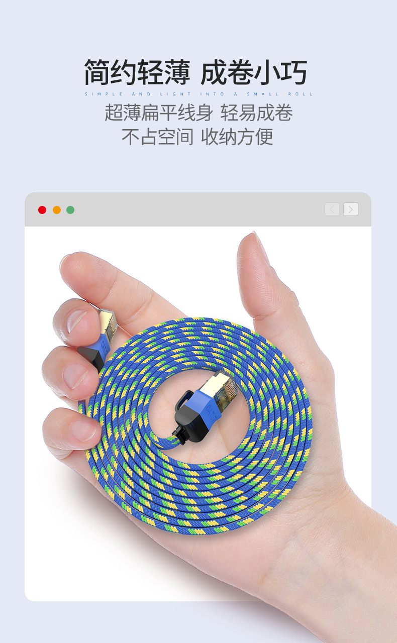 六類扁平跳線,速率可達千兆,頻率達250MHz。主要作為監(jiān)控、語音、數(shù)據(jù)、多媒體等的傳輸載體,適用于家庭游戲、影音等娛樂設(shè)備。