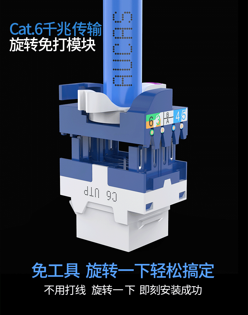 嵌入式面框,安裝方便,便于識別數(shù)據(jù)和語音端口。整體采用Press Fit技術(shù),無焊點電路板,可提高性能及降低污染。 通過TLC認證,保證NEXT值超越ANSI/TIA 568 .2-D Cat.5e的要求,及六點連接Channel測試認證。
