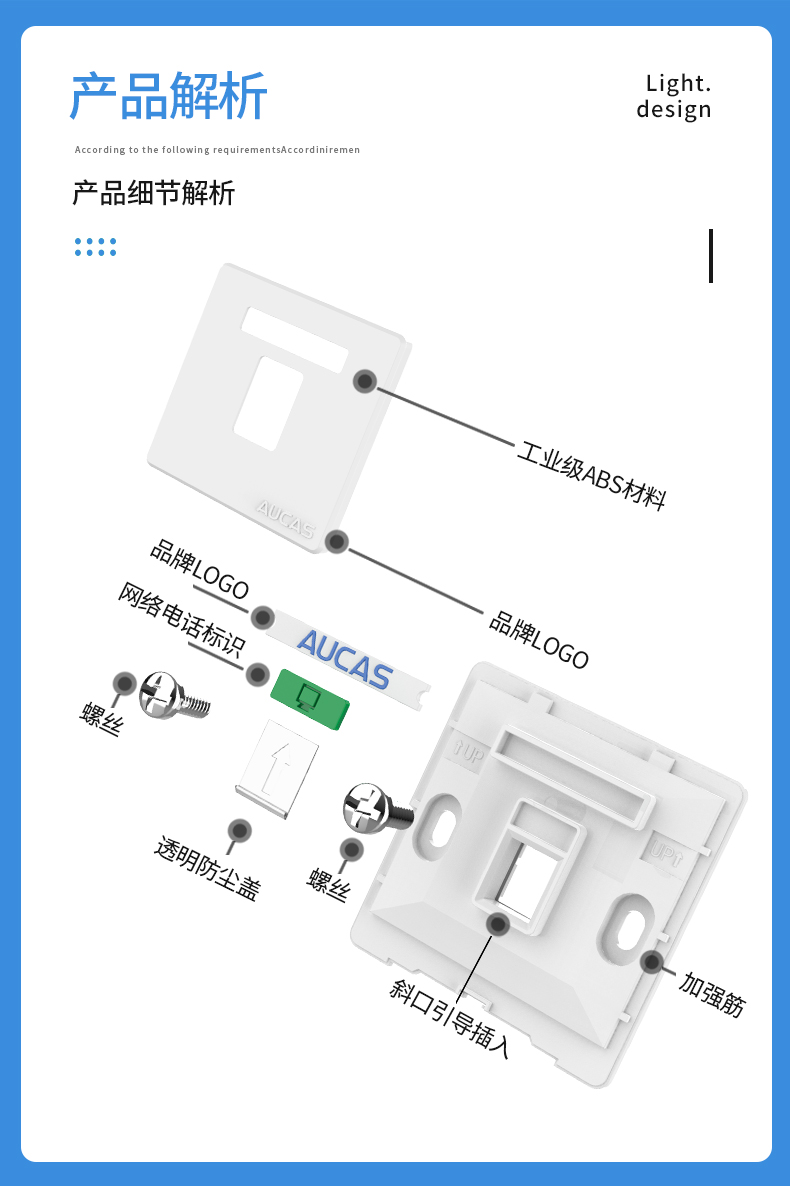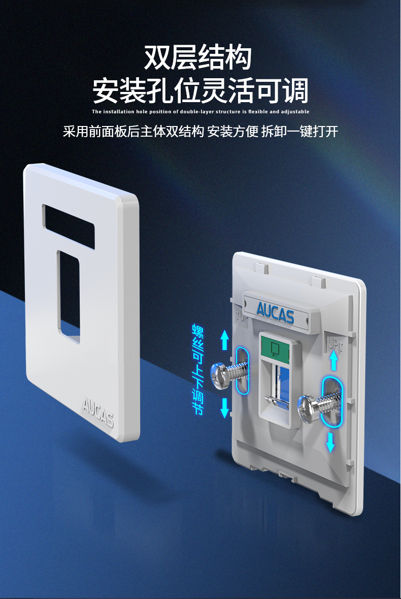 奧卡斯網(wǎng)絡(luò)信息面板嵌入式面框,安裝方便,便于識別數(shù)據(jù)和語音端口;防塵滑門用以保護模塊、遮蔽灰塵和污物進入