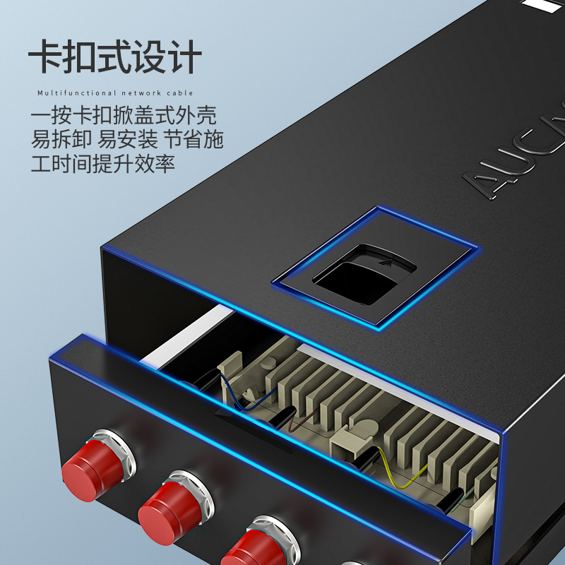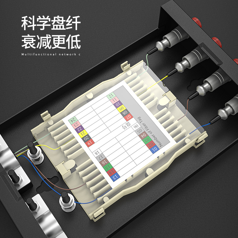 以高質(zhì)量的冷軋鋼板制作,表層靜電噴涂烤漆處理,外觀精美。通用型面板設(shè)計(jì),可安裝ST/ SC/ LC /FC等不同類型耦合器、易拆卸前蓋及上蓋扣設(shè)計(jì),免工具即可拆卸前蓋及上蓋板,裝卸更為容易