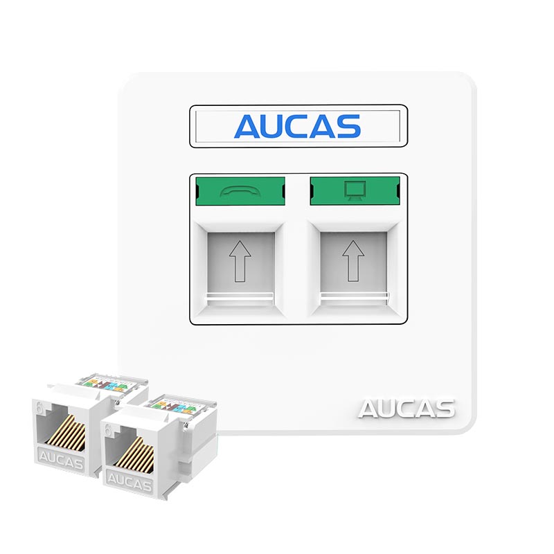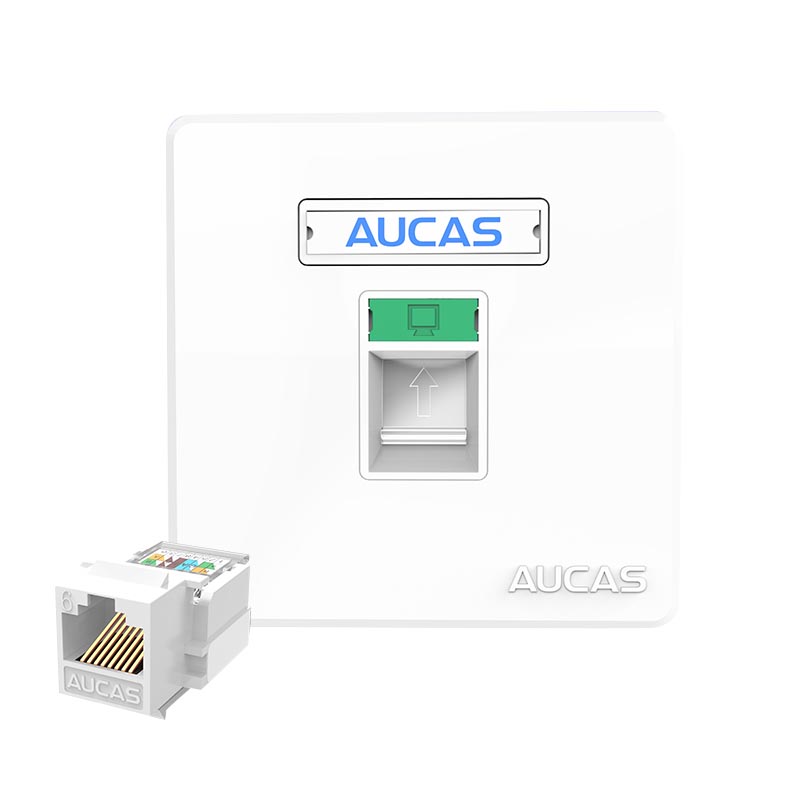 AUCAS(奧卡斯) Cat.6局域網(wǎng),傳輸語言、數(shù)據(jù)信號(hào),支持當(dāng)前的高帶寬應(yīng)用,可以安裝到墻面信息面板上,固定在桌面信息盒中,并可插拔RJ11/RJ45。